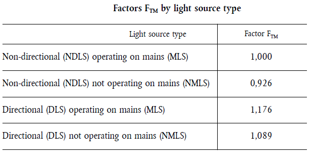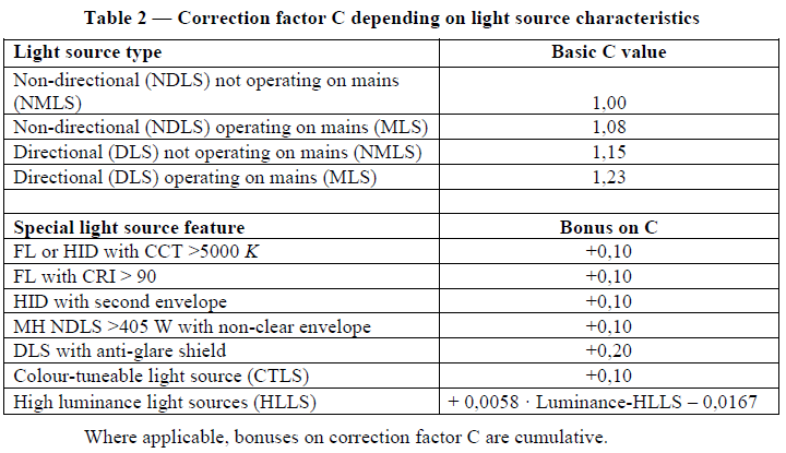 | FL荧光灯光源的控制装置 Pls ≤ 5 5 < Pls ≤ 100 100 < Pls | 0.71 Pls/(2×√(Pls36)+3836×Pls+1) 0.91 |