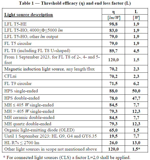 几乎所有在欧盟出售的灯泡都必须遵守ErP生态设计规则。 这些法规设定了能效要求和其他因素,例如灯泡寿命和预热时间。但是,这些法规不包括应急灯以及为剧院等特殊用途设计的灯泡,或每年少量出售(少于200件)的灯泡。